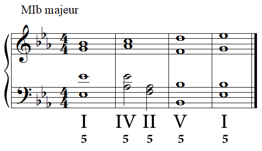 Exemple avec un VST de piano pour illustrer une cadence parfaite en MI bémol majeur à quatre voix :