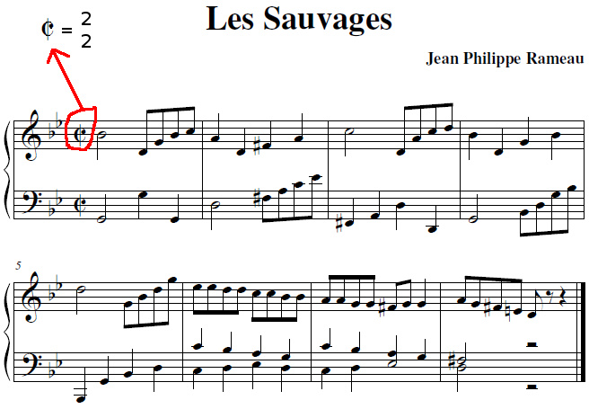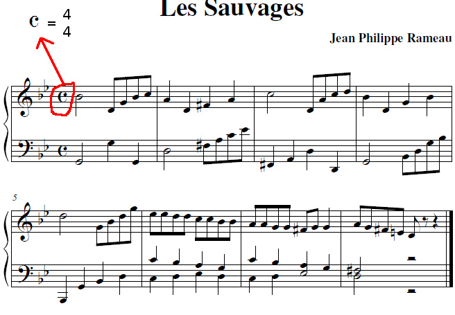 L’œuvre Les Sauvages de Jean Philippe Rameau est écrite avec un chiffrage de mesure