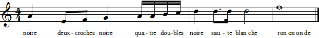 En binaire, la noire vaut 1 temps, on va donc prononcer 1 (au lieu de Noire)