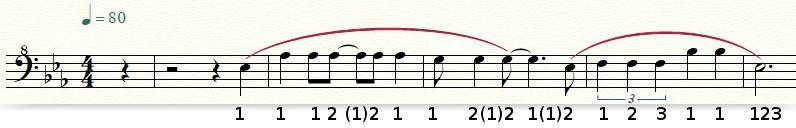 En binaire, on va donc prononcer 1(1),2 (au lieu de Noire-point-croche). On ne prononce pas le chiffre entre parenthèses.