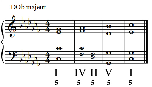 Voici une cadence parfaite en DO bémol majeur à quatre voix.