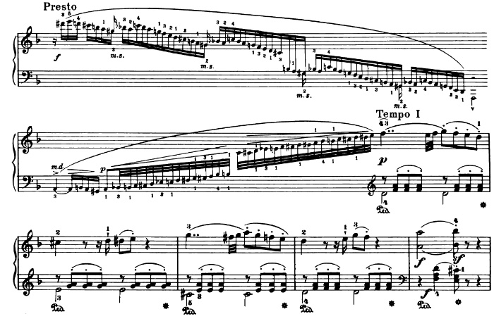 La Fantasia en RÉ mineur K.397/385g pour piano de Wolfgang Amadeus Mozart comporte une cadence dans laquelle se trouve une gamme chromatique ascendante :