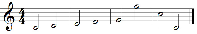 Les hampes (queues des notes) peuvent être orientées vers le haut ou vers le bas (exemple précédent) selon la règle :