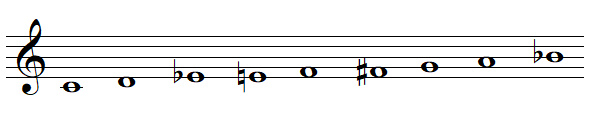 Le nom de cette gamme provient du fait qu'elle est la fusion de la gamme blues de base et du mode myxolydien, blues + myxolydien = mixoblues :