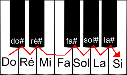 Pour jouer la gamme chromatique sur un piano il faut utiliser successivement toutes les touches blanches et les touches noires :