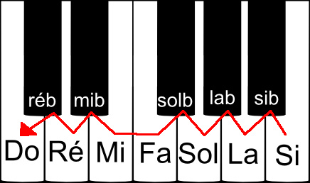La gamme chromatique descendante est une succession de douze sons qui sont tous séparés par un demi-ton.