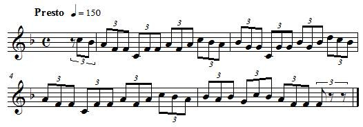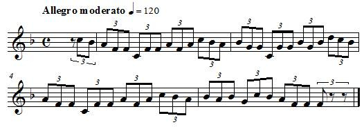 Voici la même mélodie avec deux tempi différents, l'une à 120 pulsations par minute et l'autre à 150 pulsations par minute :