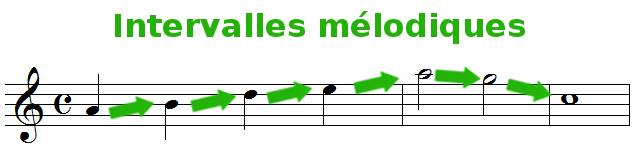 Un intervalle mélodique est la distance entre 2 notes d'une mélodie, les 2 notes sont jouées l'une après l'autre.