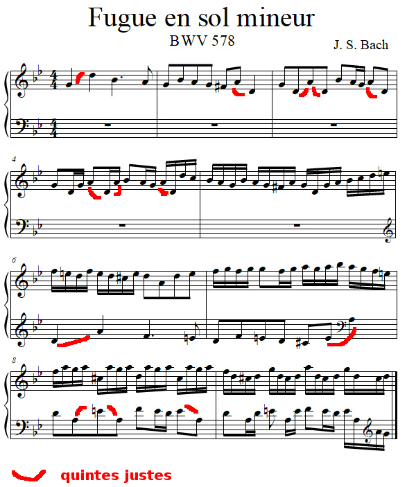 La Fugue en Sol mineur BWV 578 de J.S. BACH commence par une quinte juste :