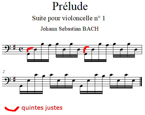 Le Prélude de la Suite n°1 pour violoncelle de J.S. BACH commence par une quinte juste :