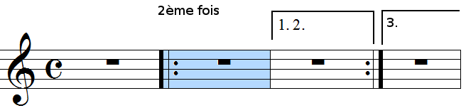 Les barres de reprises permettent de répéter un passage, il faut concevoir les barres de reprises comme des miroirs :