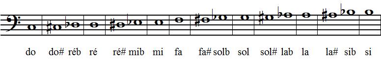 Le plus petit intervalle (distance) est le demi-ton et voici comment sont répartis les tons et les demi-tons :